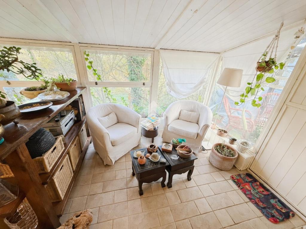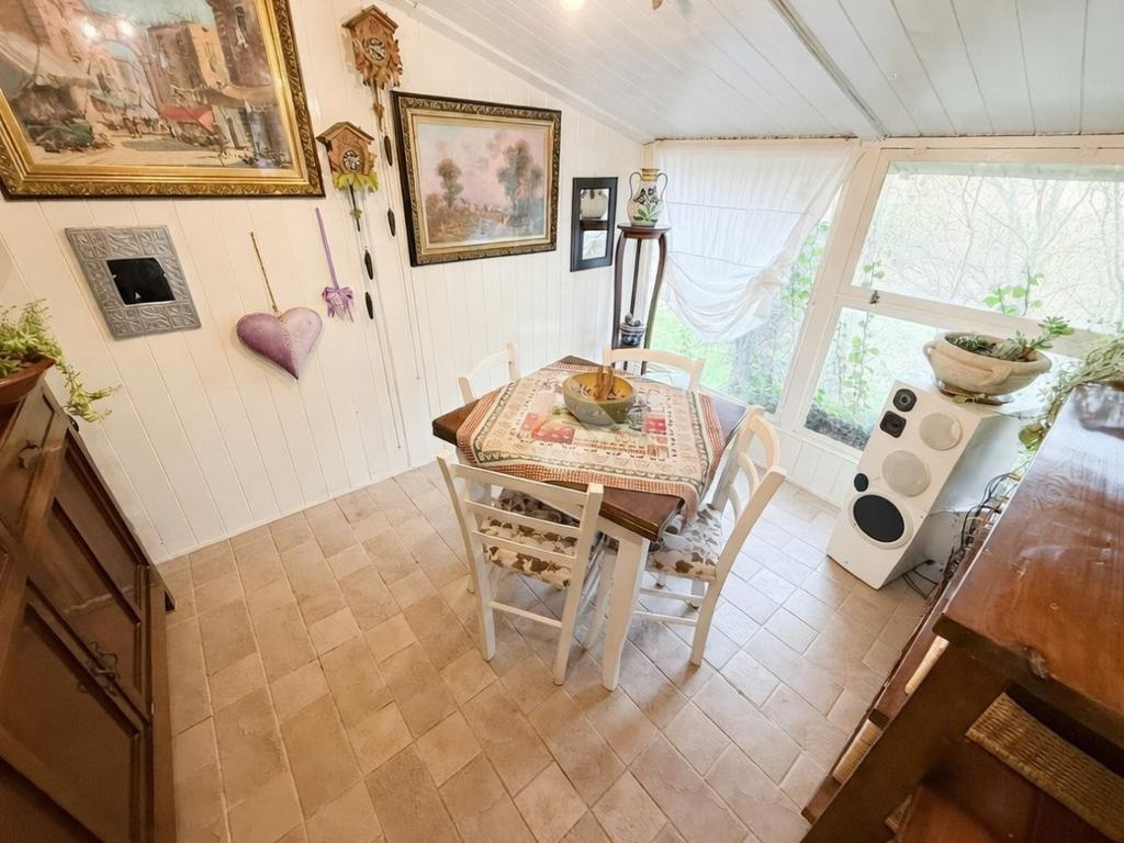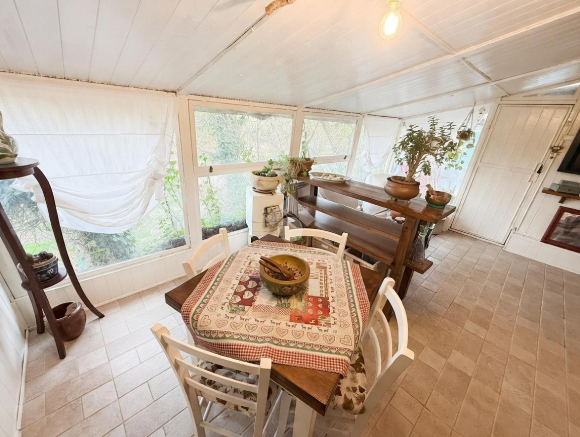 Il giardino, disposto su due livelli e mantenuto con cura, accoglie con un grazioso vialetto che porta direttamente all’ingresso principale. Al piano terra si apre una luminosa zona giorno composta da un’accogliente saletta da pranzo e da una cucina abitabile, mentre la vera protagonista è la splendida veranda finemente curata in ogni dettaglio: un angolo perfetto per pranzi e cene all’aperto, con una vista mozzafiato sulla campagna circostante e sul giardino privato. Sempre al piano terra, in un pratico vano sottoscala, trovano posto la caldaia e la lavatrice.