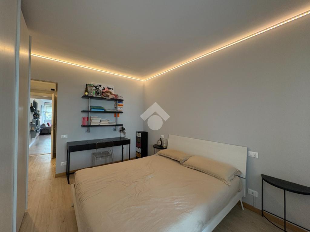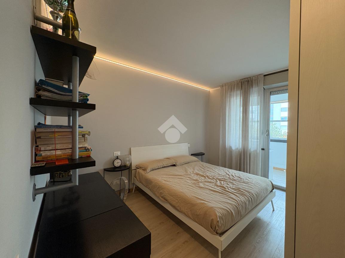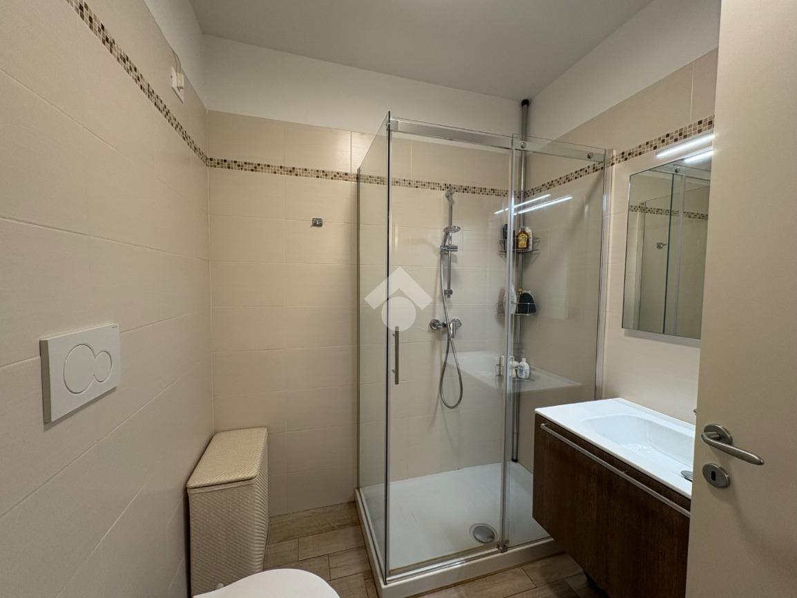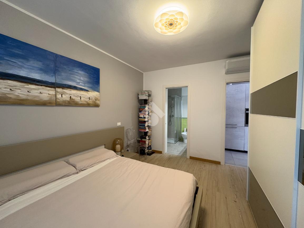 Dalla zona giorno si accede alla seconda camera matrimoniale, che dispone di un secondo bagno privato, anch'esso cieco e completo di box doccia, garantendo massima privacy e comfort.