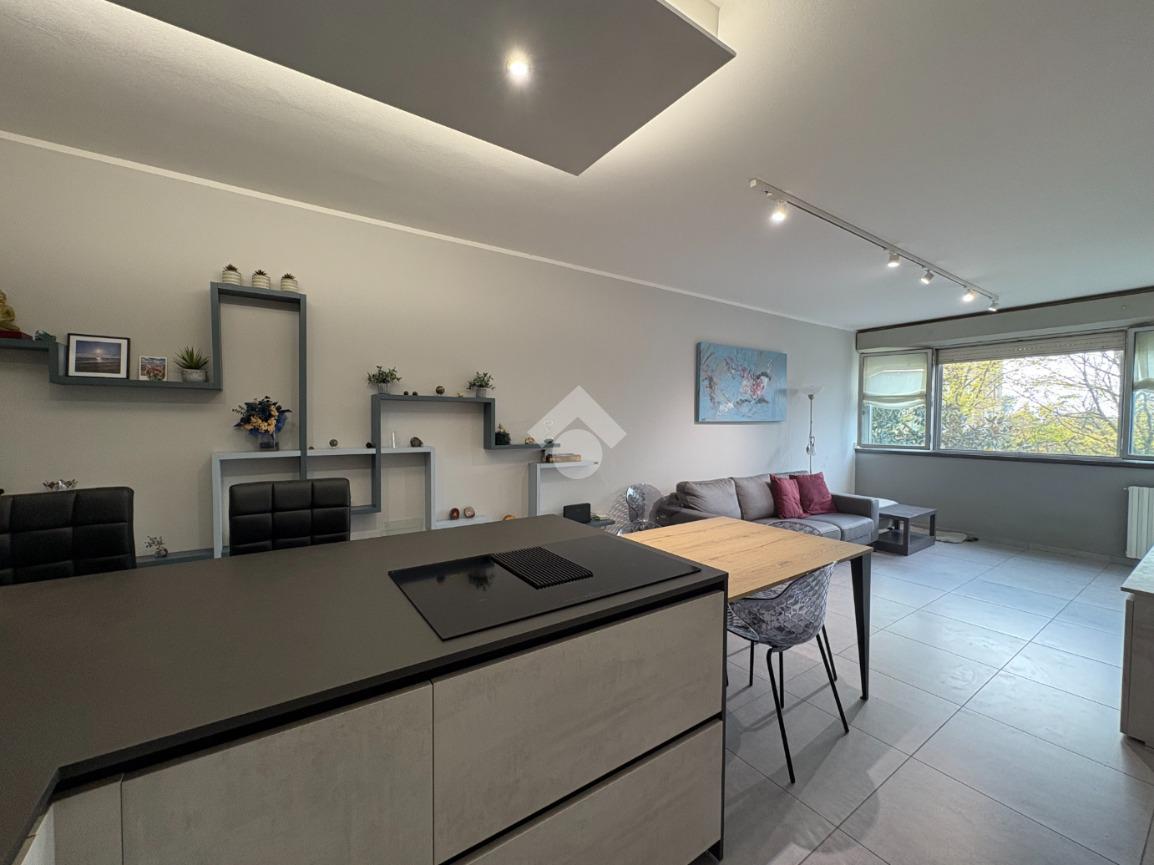 La zona giorno, spaziosa e luminosa, è il vero cuore pulsante della casa. Qui, il soggiorno con angolo cottura si distingue per la sua luminosità e offre accesso diretto al secondo balcone,anch'esso loggiato, ideale per momenti di relax.