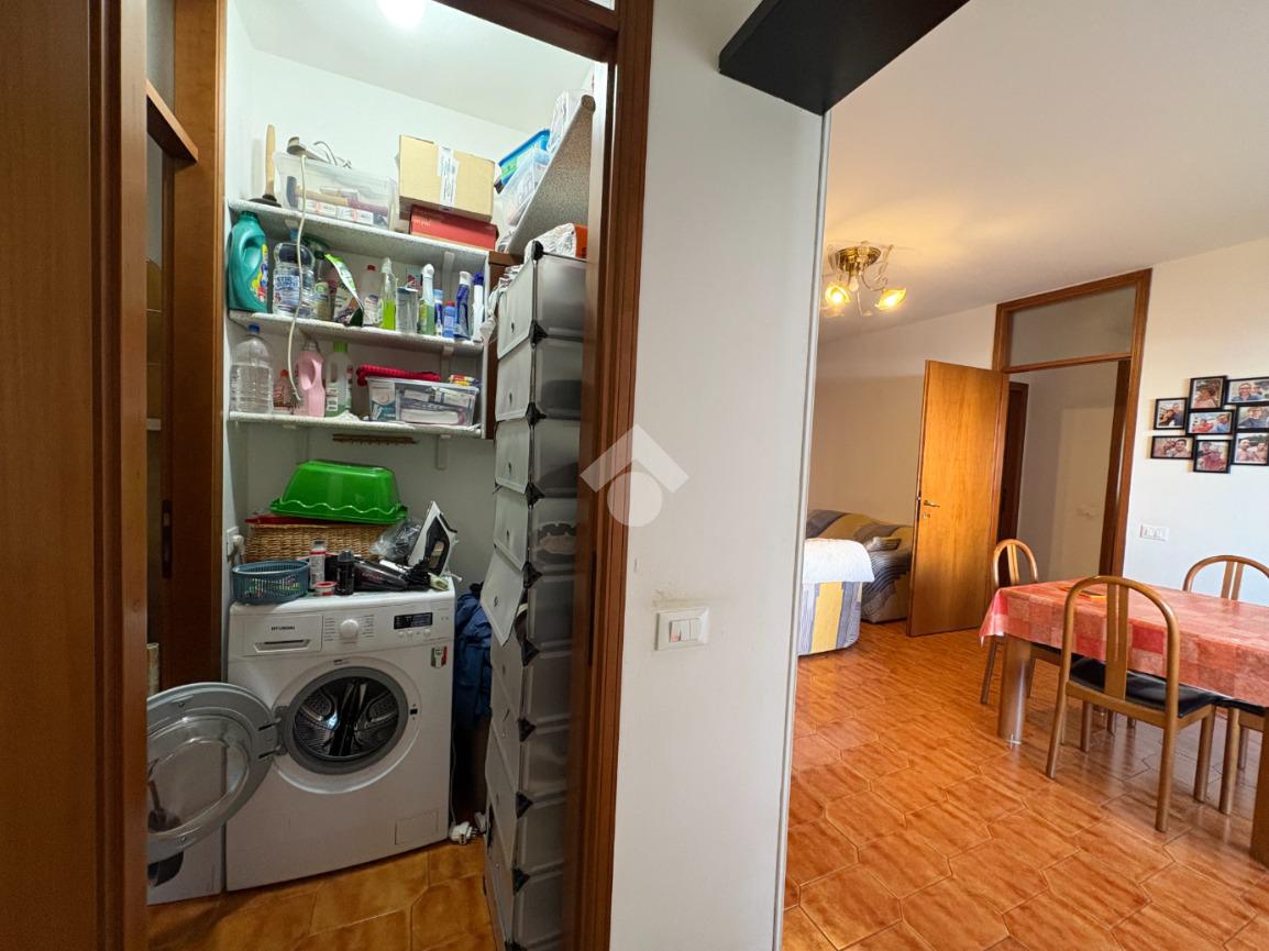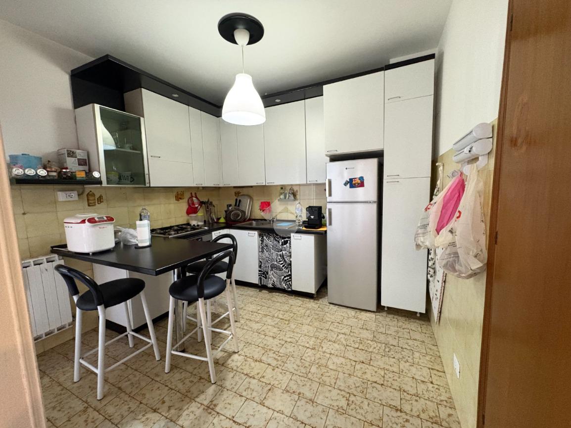 La zona giorno è dotata anche di una cucina abitabile e separata dal soggiorno, anch’essa con accesso al terrazzo, dove troviamo anche il primo bagno di servizio, che dispone anche di antibagno adibito a lavanderia.