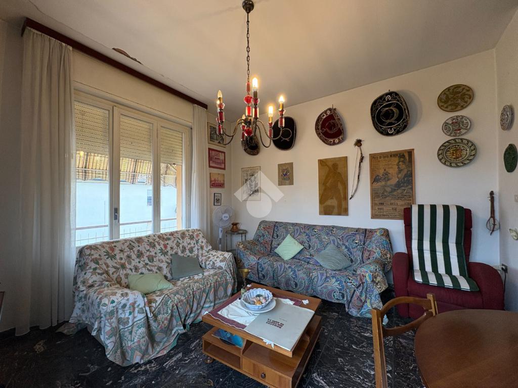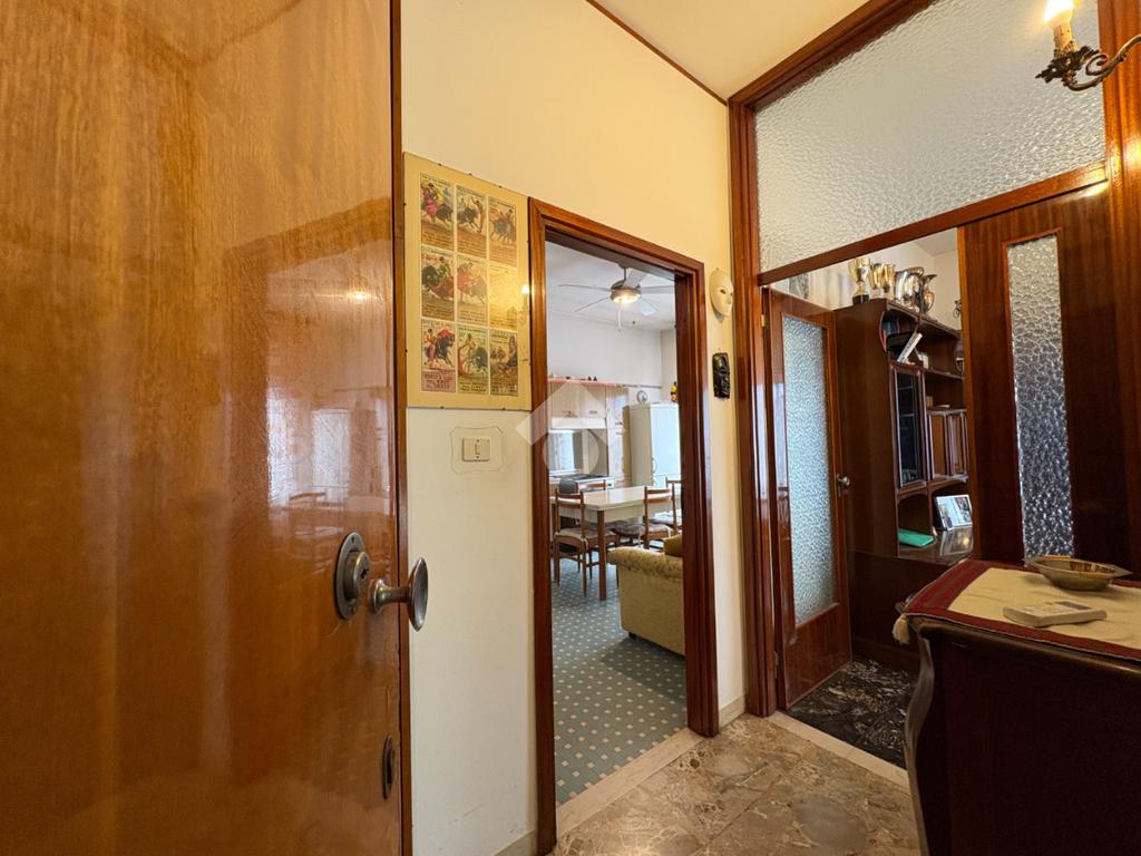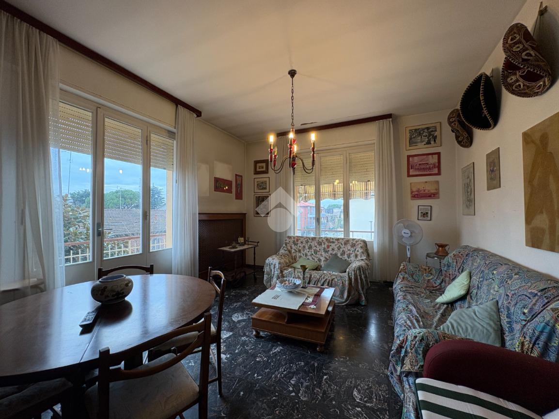 Proseguendo, arriviamo nell'ampio e luminoso soggiorno, illuminato da due porte finestre che si aprono sullo stesso balcone, offrendo una vista aperta e un flusso di luce naturale che rende l'ambiente accogliente e vitale.