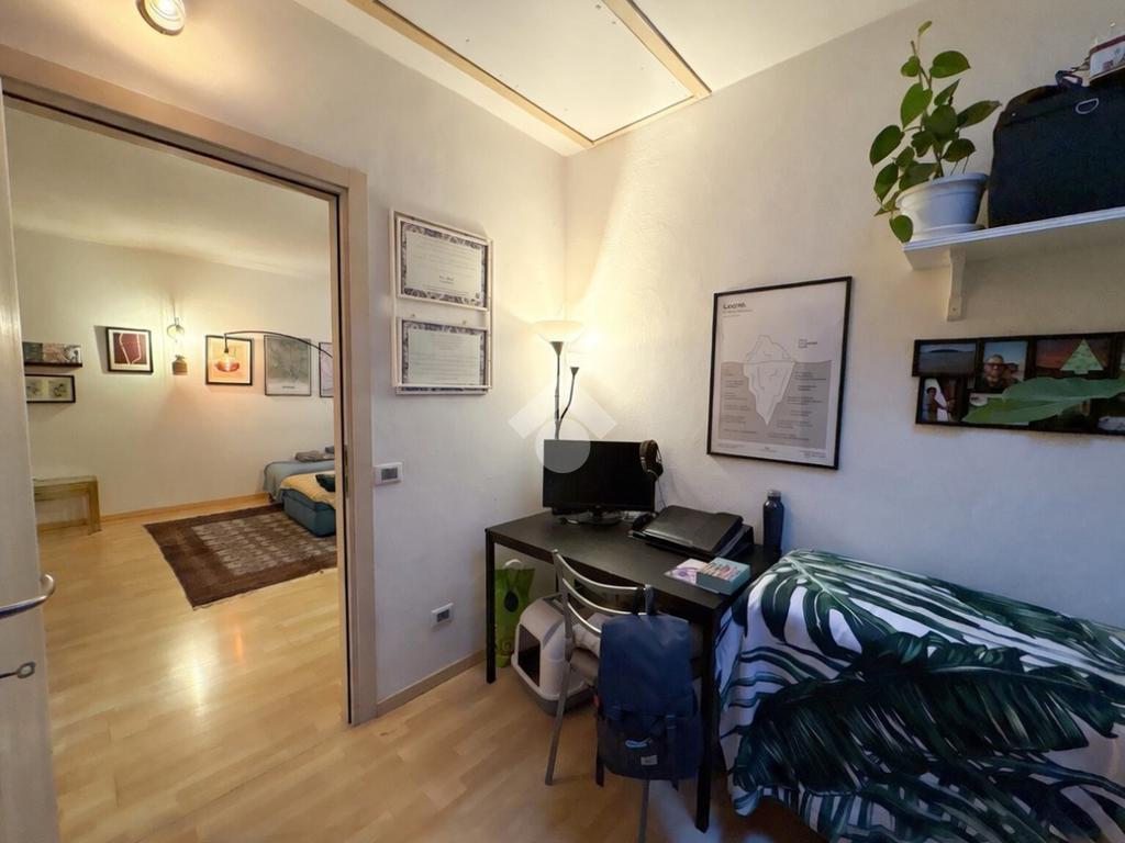 Dalla zona giorno si arriva alla prima camera singola, attualmente adibita a studio versatile dal quale c'è la possibilità di sfruttare il sottotetto di proprietà come uso deposito, e la seconda camera matrimoniale, anch'essa con accesso al balcone per un flusso di aria e luce naturale.