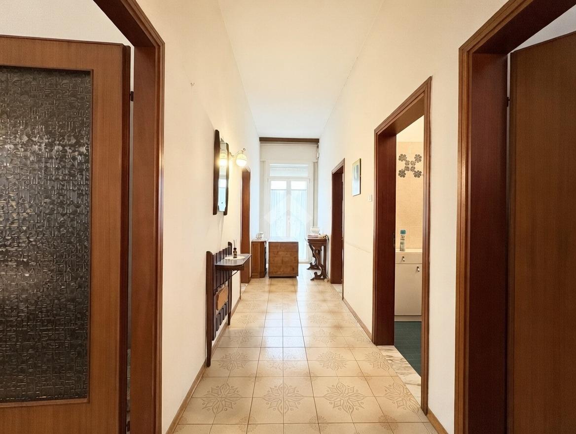 L’appartamento al piano primo ha un ingresso riservato tramite scala esterna indipendente che conduce prima a un ampio terrazzo vivibile, e poi all’interno dell’alloggio. Una volta entrati troviamo la sala da pranzo ampia e molto luminosa, da cui parte un corridoio che collega: una prima camera singola utilizzabile anche come studio, la cucina abitabile, un bagno finestrato con doccia e sanitari, una seconda camera singola e la camera padronale matrimoniale.