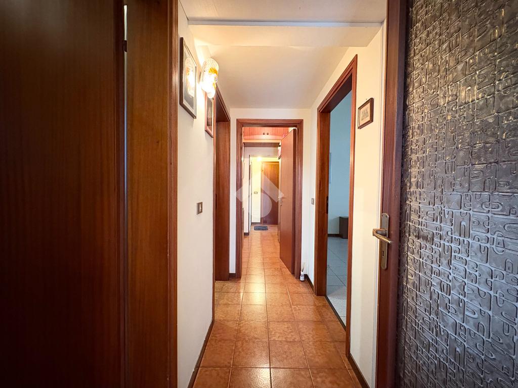 Dal soggiorno parte un corridoio che distribuisce gli ambienti: una prima camera matrimoniale, una seconda camera doppia, un bagno finestrato completo di box doccia e sanitari, un secondo soggiorno con camino molto accogliente, perfetto per cene in compagnia o come sala conversazione, e un comodo vano dispensa/ripostiglio.