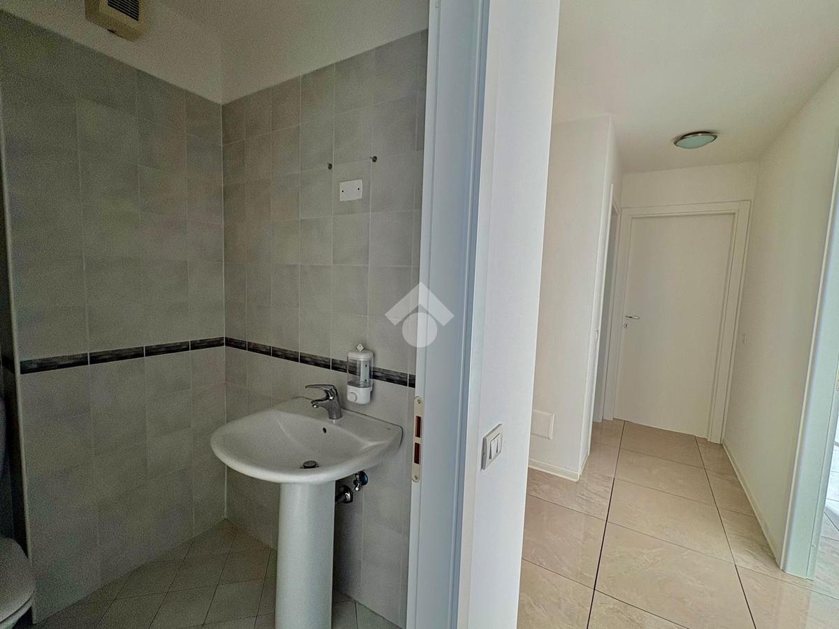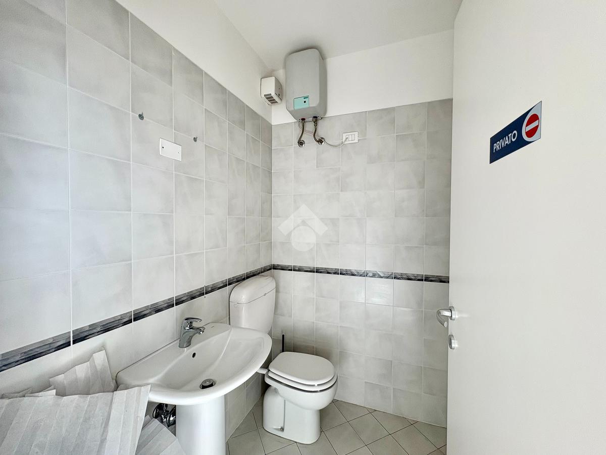 L'unità dispone inoltre di un primo bagno, di un secondo servizio igienico e di un ampio ufficio open space con doppio