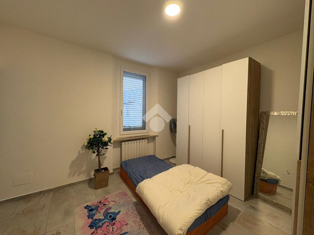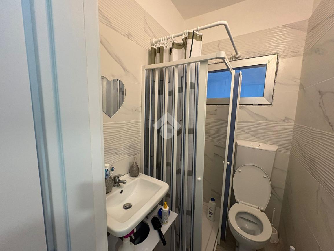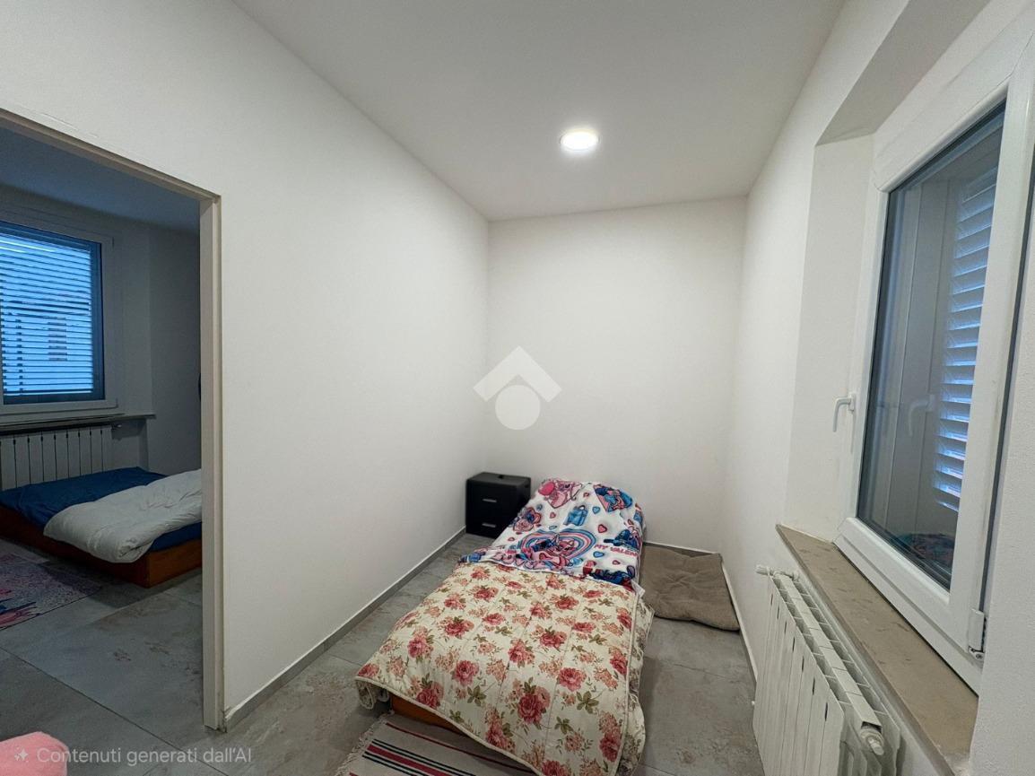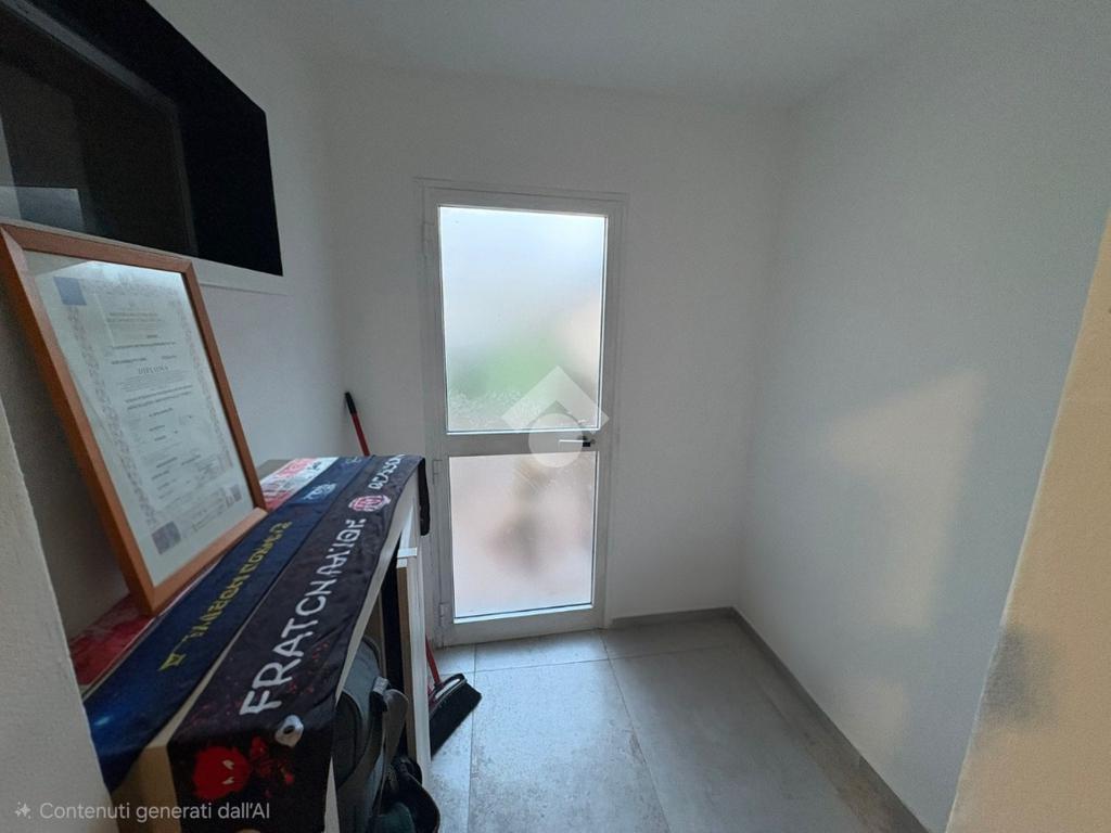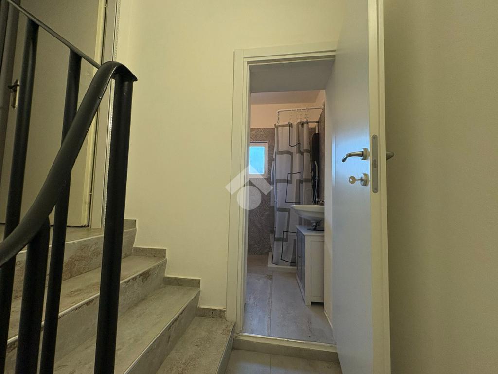 Tramite la casa interna accediamo al piano primo dove disponiamo del secondo bagno finestrato con box doccia, un vano disimpegno ad oggi adibito a seconda camera, una camera matrimoniale dalla quale si accede a un vano ripostiglio che può essere adibito a cabina armadio.