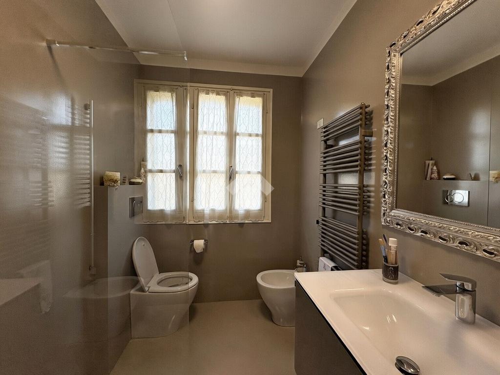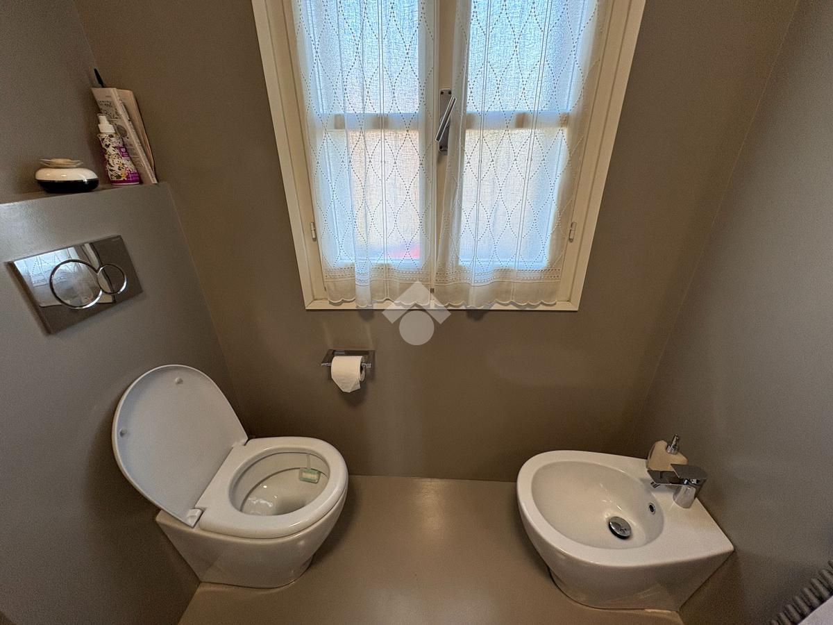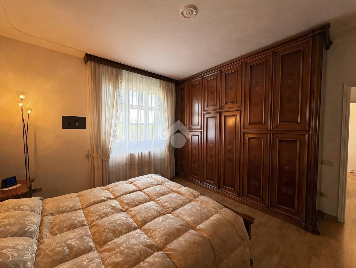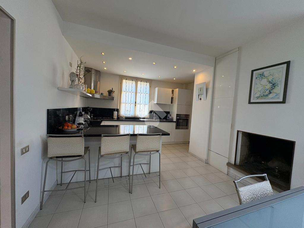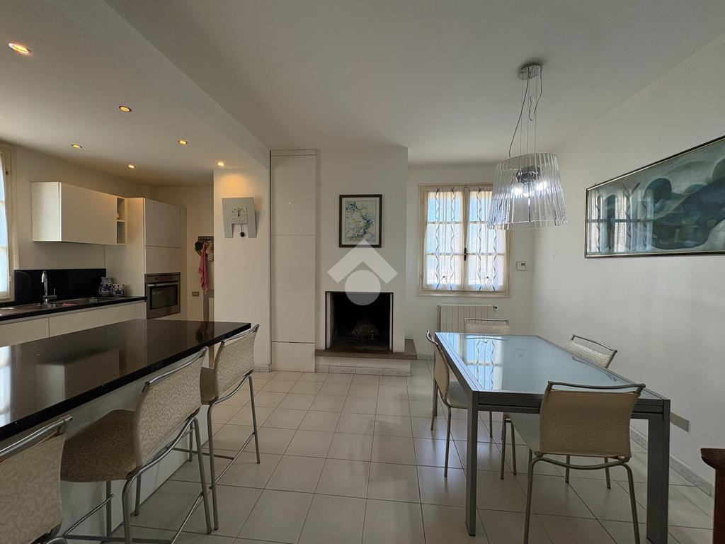 Qui il soggiorno, reso particolarmente accogliente dalla stufa a pellet e dall’accesso diretto al balcone, è separato dalla cucina abitabile dove è presente un secondo camino a legna funzionante.