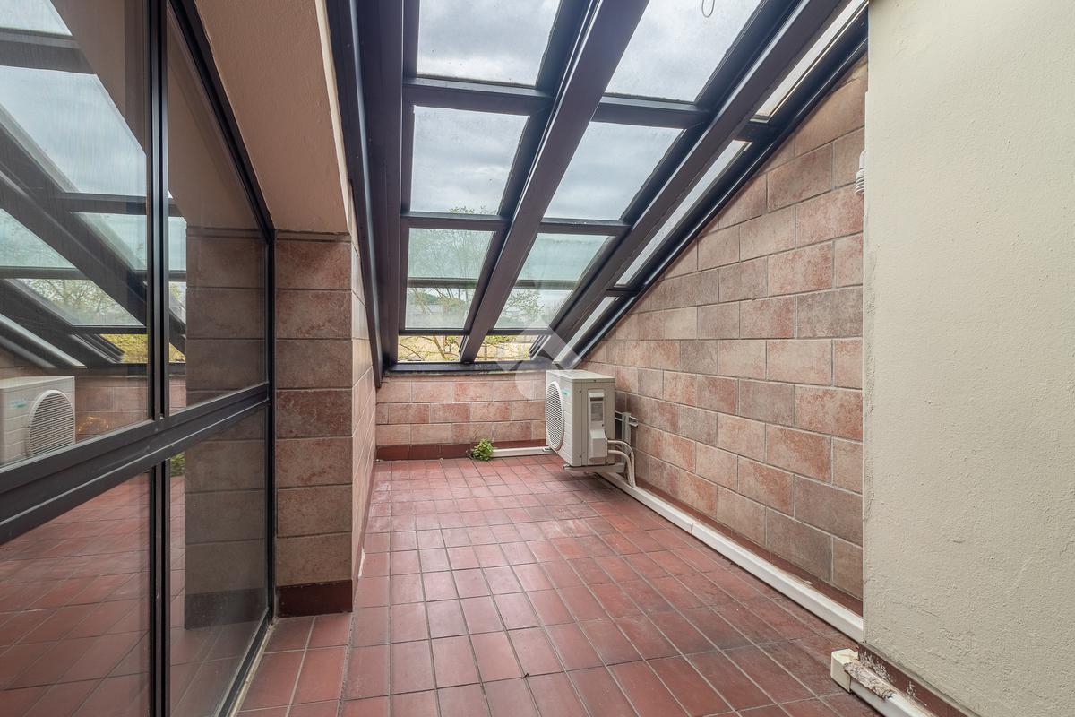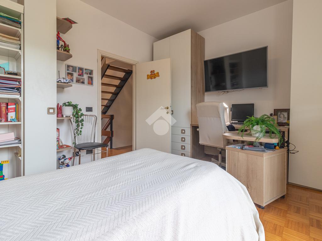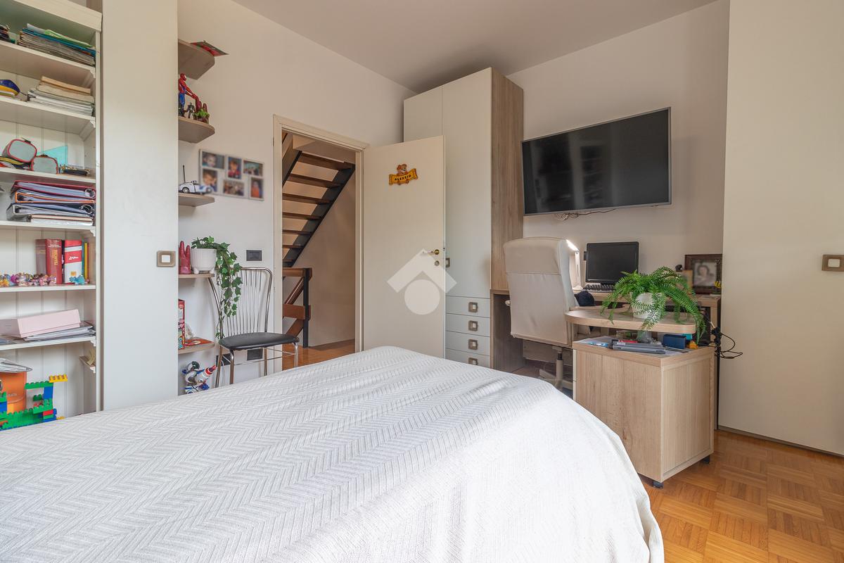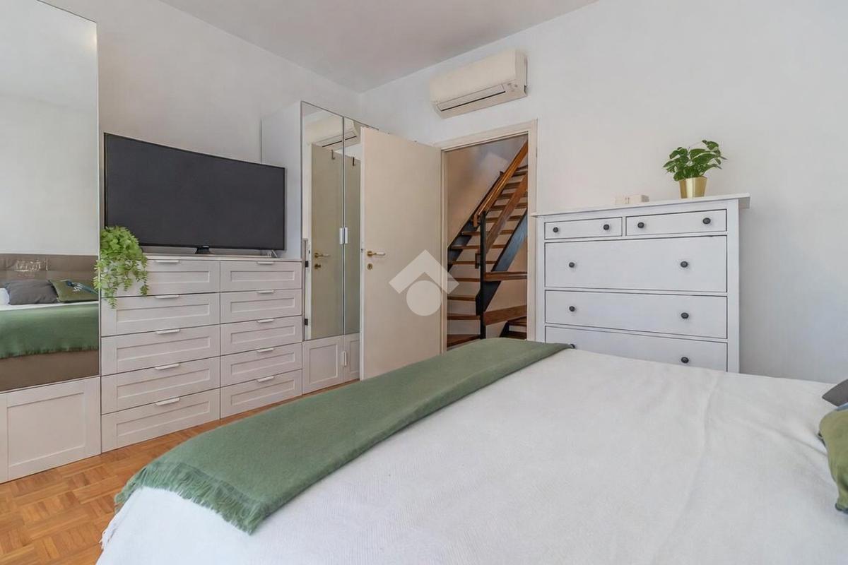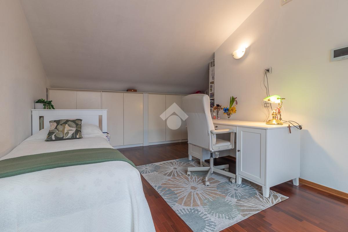 Accediamo all'ultimo livello, la zona mansardata, attualmente utilizzata come terza camera da letto, dotata di un comodo solarium.